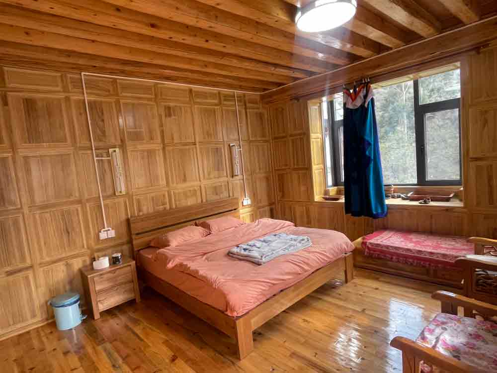 Our cozy living room is decorated with typical woodcarvings on the walls, a wide Buddhist shrine, and a constant flaming stove. After enjoying dinner in the warm parlor, we invite you to savor our homemade red wine or Ara, a barley liquor. On clear nights, the unpolluted starry sky provides a breathtaking view and peaceful sleep. Our homestay provides a wonderful breakfast and lunch that includes Baba, a traditional Tibetan bread, and self-made butter tea.