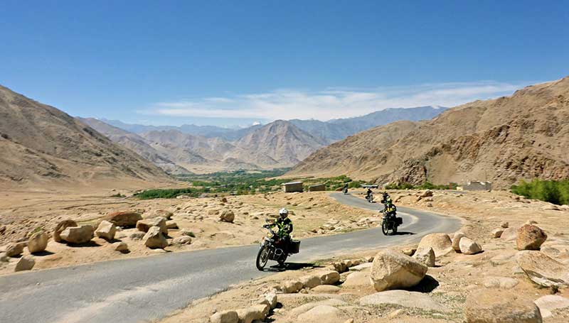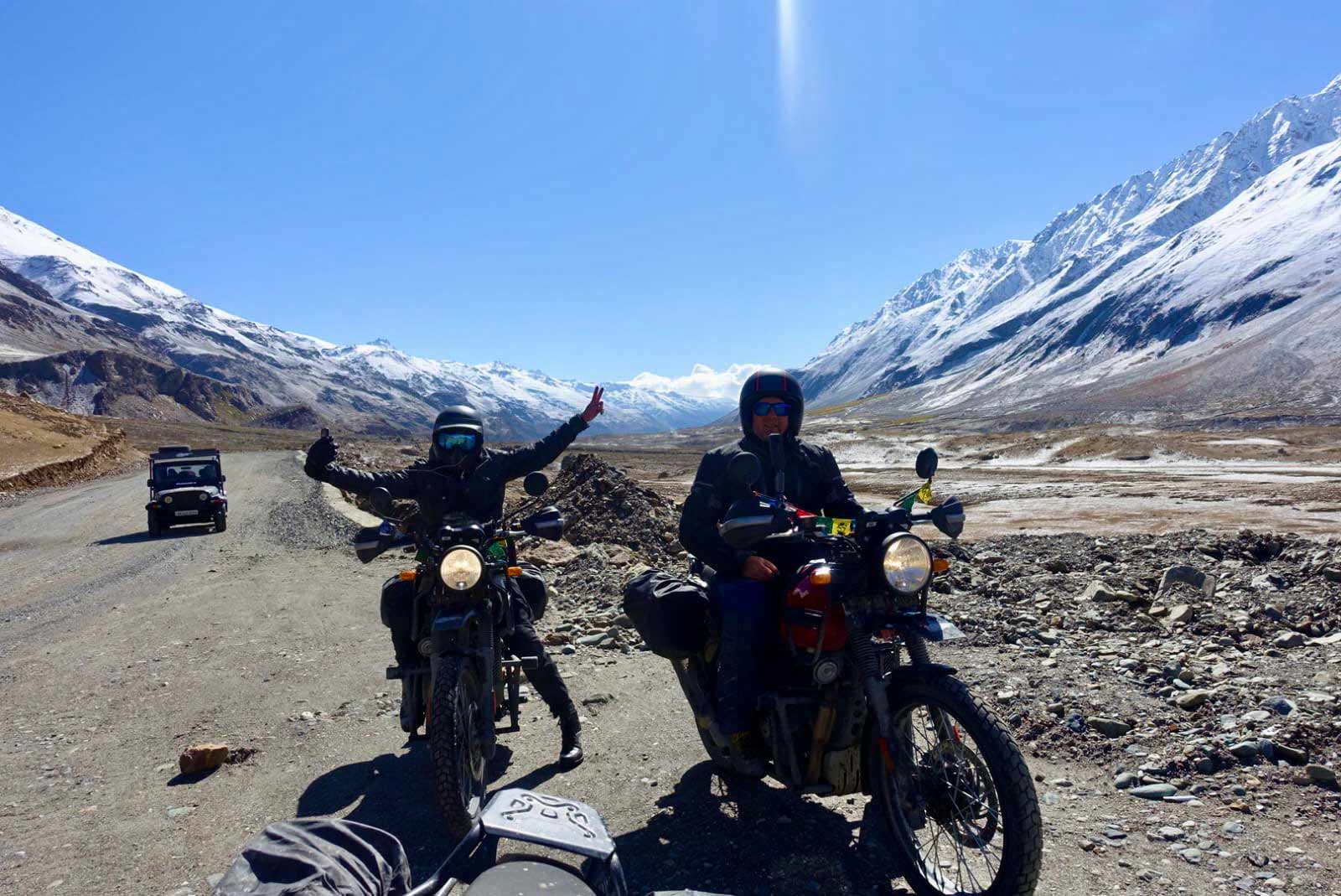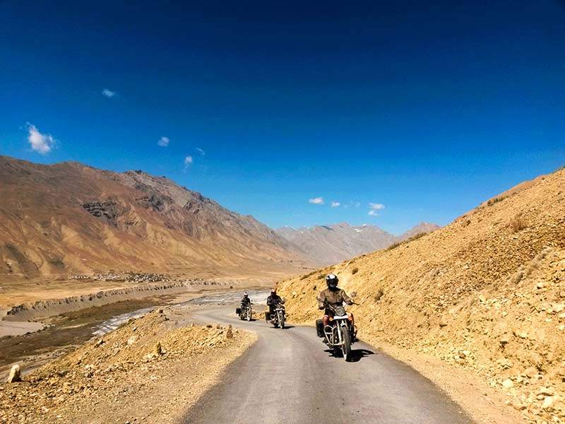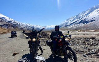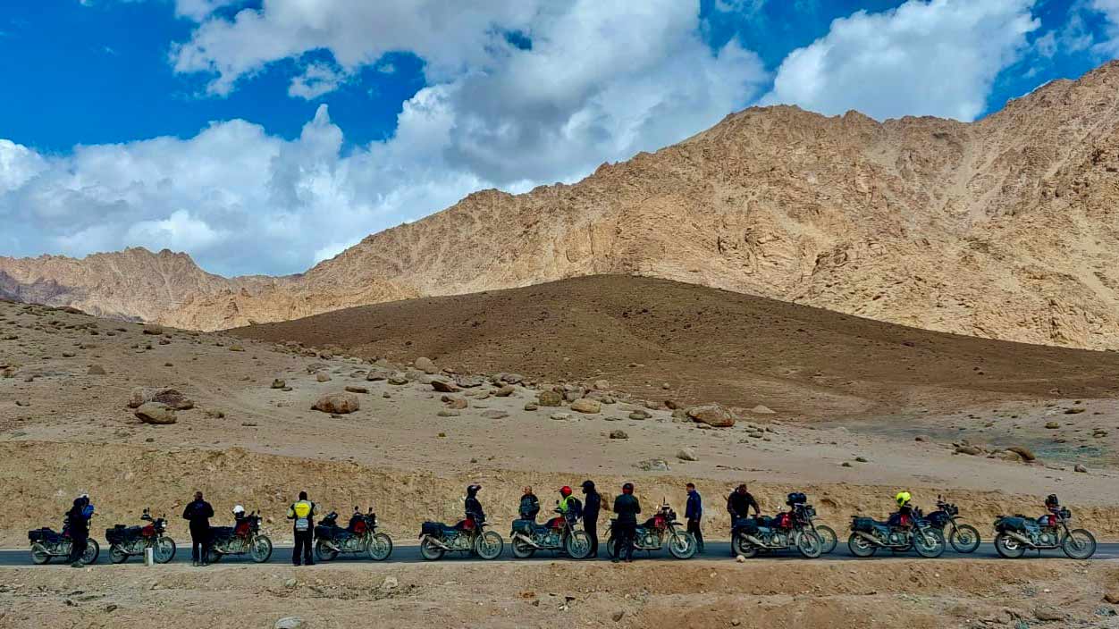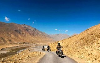 The tour is operated exclusively with the Royal Enfield Himalayan. This lightweight adventure motorcycle is particularly well suited to the demanding terrain and high mountain roads of Ladakh and Zanskar.