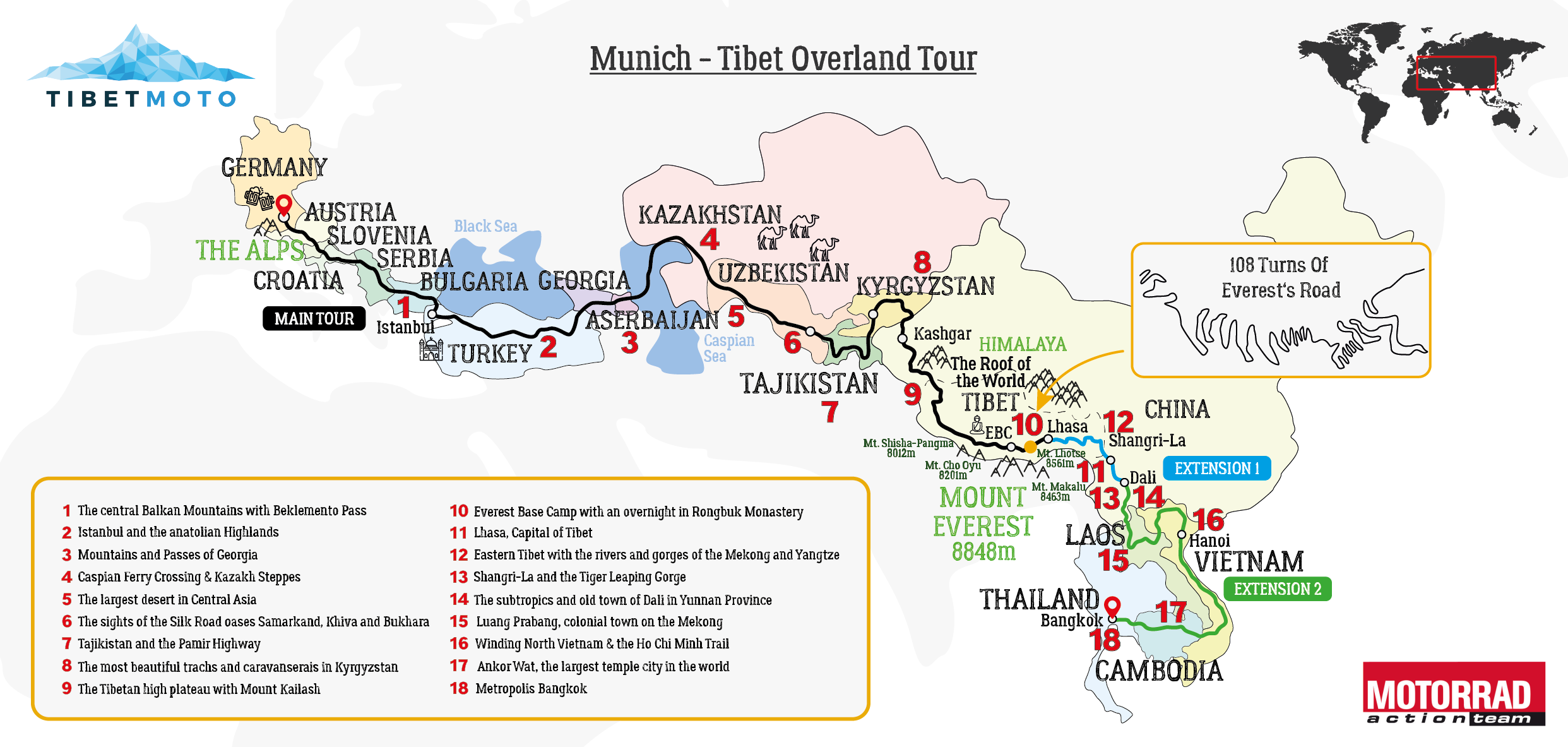Main Tour – Munich to Tibet – Itinerary