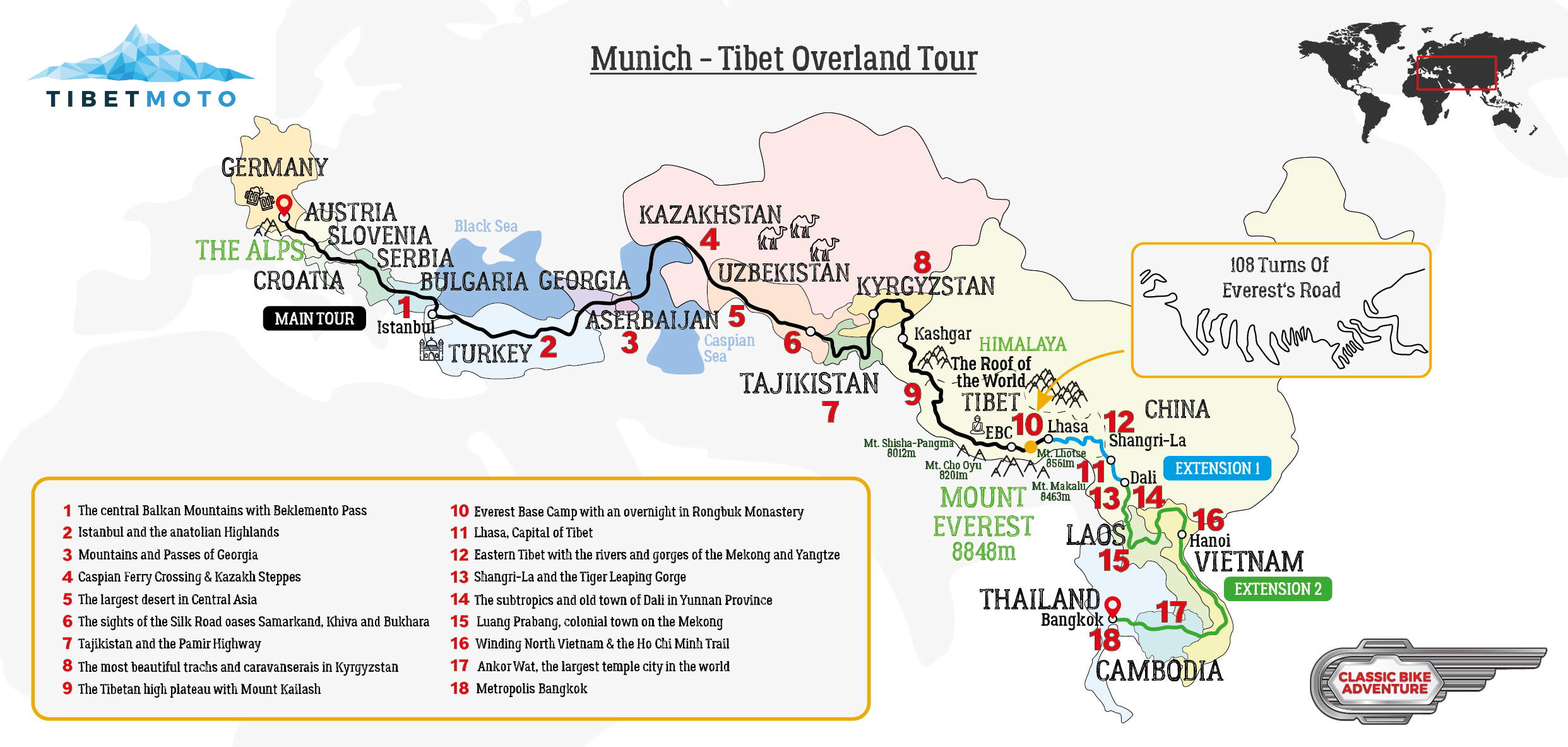Main Tour – Munich to Tibet – Itinerary